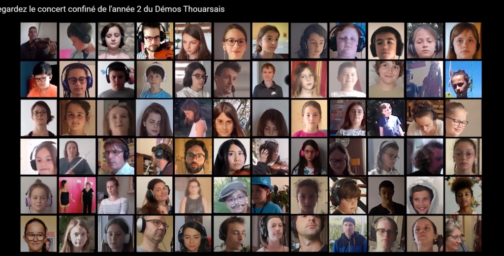 Après 2 mois et demi de cours individuels à distance, une cinquantaine d'enfants de l'orchestre Démos Thouarsais, avec l'équipe de musiciens, référents sociaux et du chef d'orchestre, nous offrent un magnifique concert confiné! Ils chantent et dansent la "Suite de marchoises", chant traditionnel du Poitou, au répertoire de leur 2ème année Démos. Après la déception de l'annulation du grand concert annuel d'avril, cette vidéo a permis de conclure l'année sur une belle création collective !